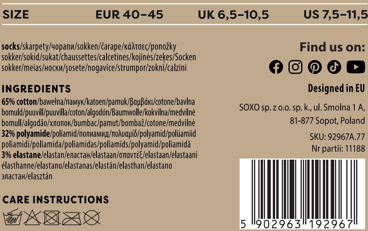 Každodenný styling so SOXO ponožkami nemusí byť nuda! Vtipné vzory budú ideálne pre akýkoľvek styling. Noste ponožky kdekoľvek chcete. Kvalitná bavlna zaisťuje pohodlie každý deň. Dajte si darček a užite si dobrý výber!